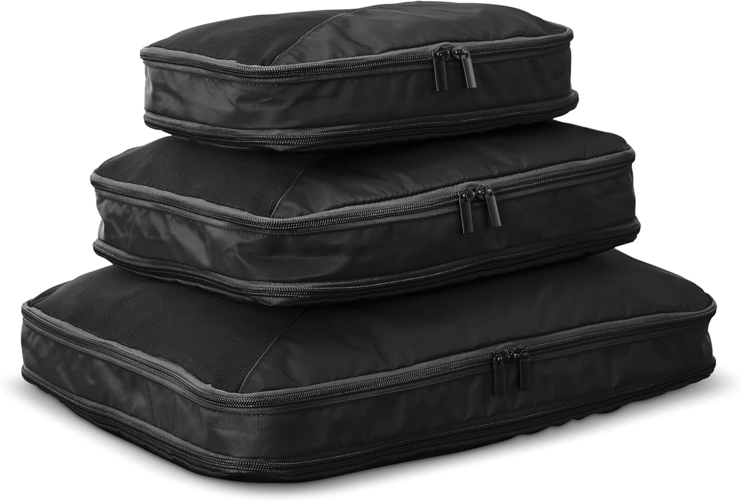 Perfect for frequent travelers, backpackers, and anyone looking to simplify their packing routine, the 3-Piece Compression Packing Cube Set in black is a game-changer. Say hello to a more organized and efficient way to travel – order yours today and experience the difference for yourself!